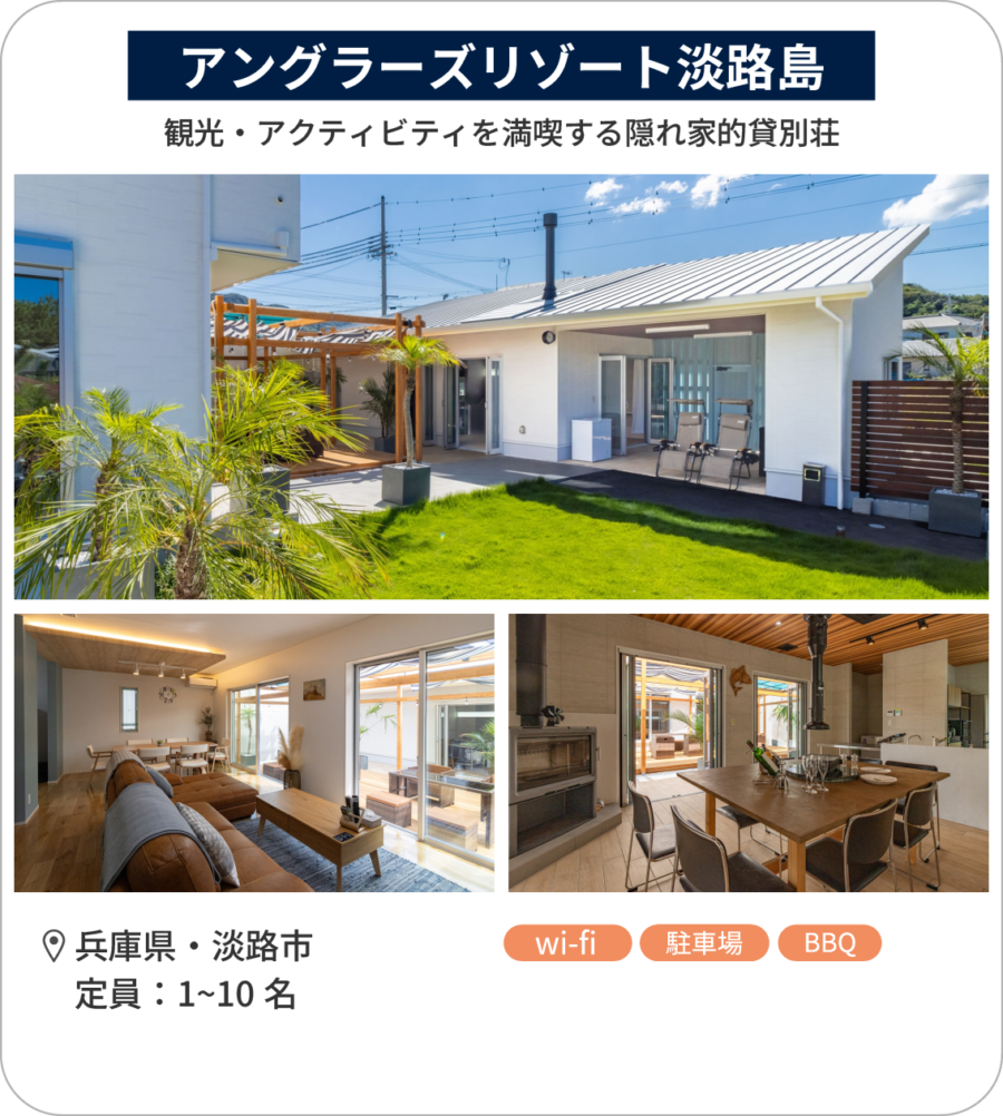 観光・アクティビティを満喫する隠れ家的貸別荘「アングラーズリゾート淡路島」