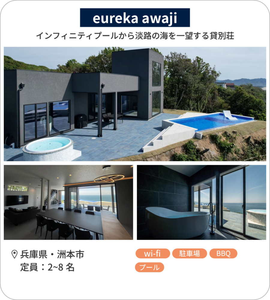 インフィニティプールから淡路の海を一望する貸別荘「eureka awaji」