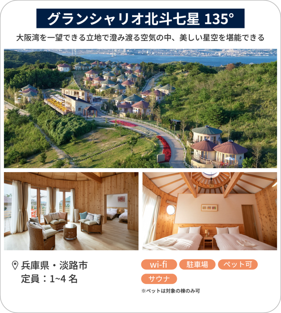 大阪湾を一望できる立地で美しい星空・澄み渡る空気の中を堪能することのできる「グランシャリオ北斗七星135°」