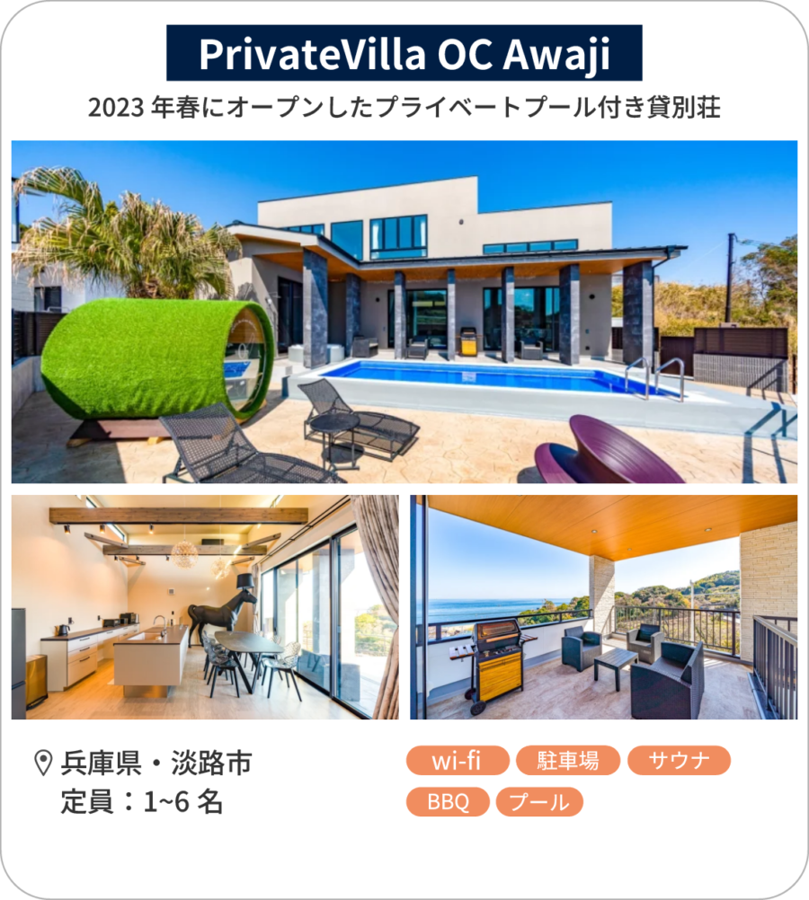 2023年春にオープンしたプライベートプール付き貸別荘「PrivateVilla OC Awaji」