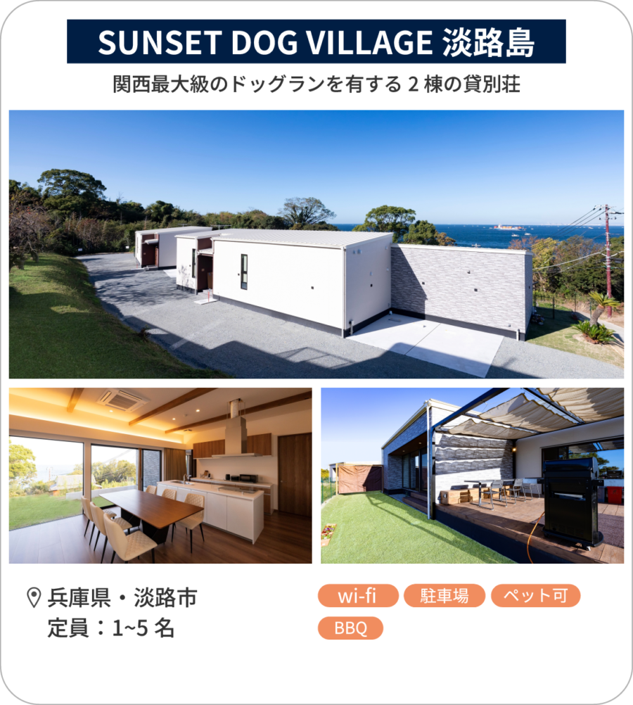 | 一覧表(2) | BRIDGE coastal villa | 淡路島の貸別荘 パラン | SOOTHE FOREST | Dog villa HAPPINESS 淡路島 | KONA RESORT AWAJI KAI | Nook The Peak | 淡路別邸HOMARE | SUNSET DOG VILLAGE 淡路島 |