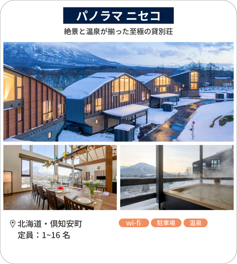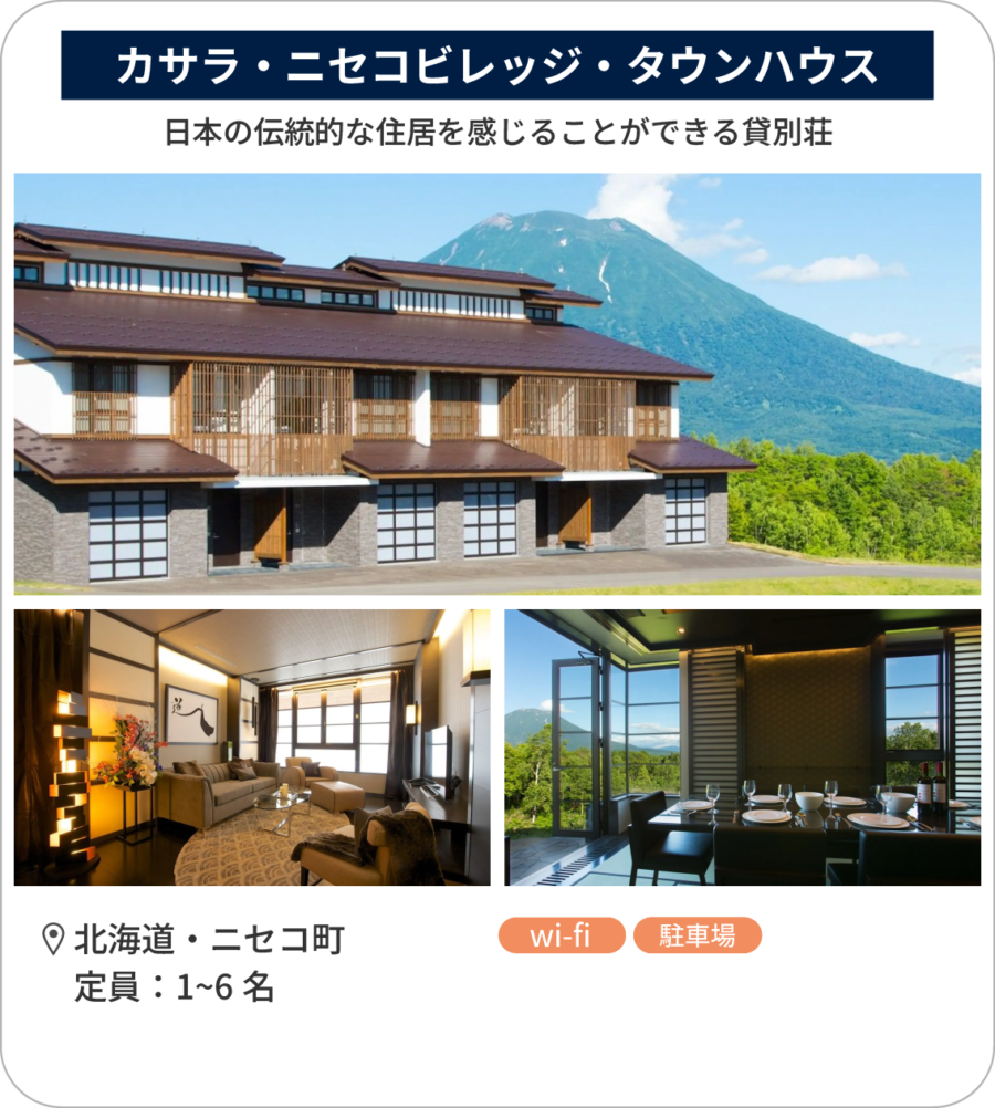| 一覧表(2) | Lantern SHIRETOKO | FOX&CRANE Cabin | パノラマ ニセコ | VILLA BRAMARE | カサラ・ニセコビレッジ・タウンハウス | Cliff House MORAI |