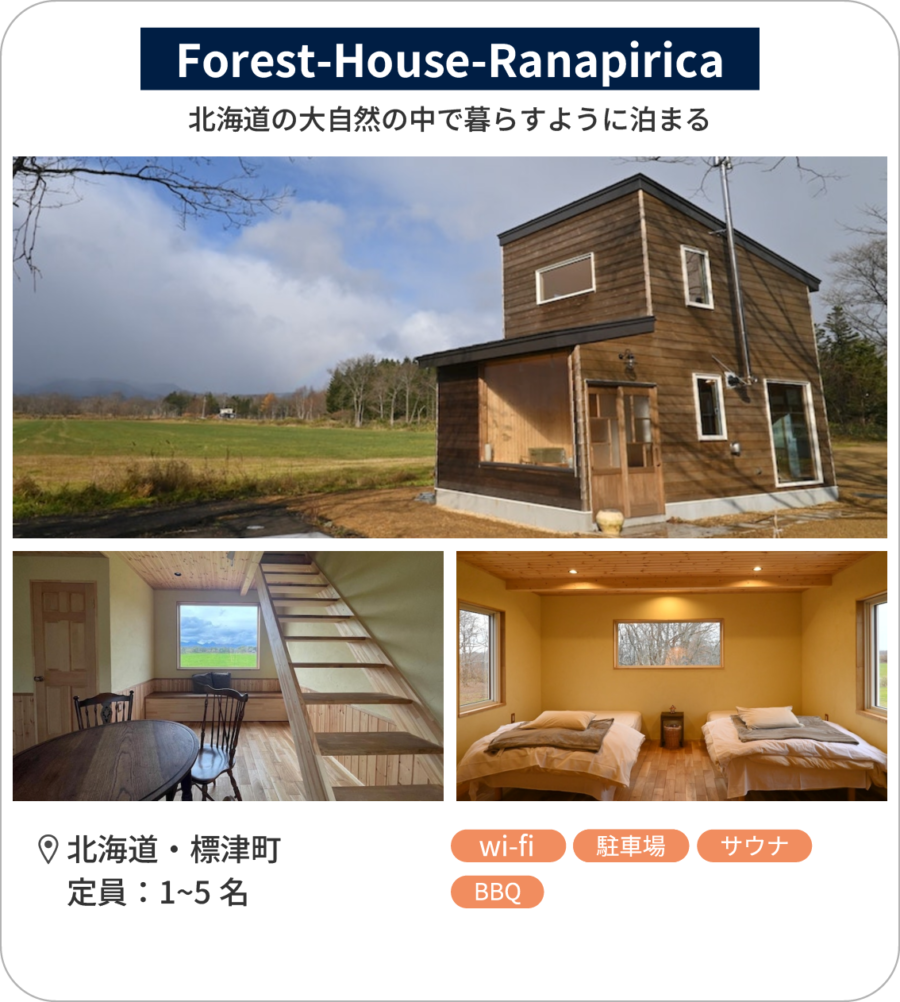 北海道の大自然の中で暮らすように泊まる「Forest-House-Ranapirica」