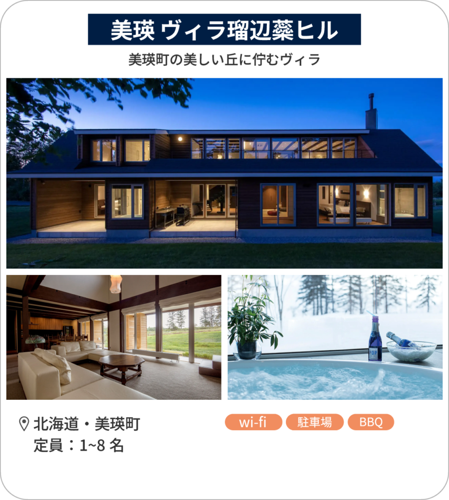 北海道の大地を感じつつ最新設備の整った施設で、住むように過ごせる居心地の良いヴィラです。