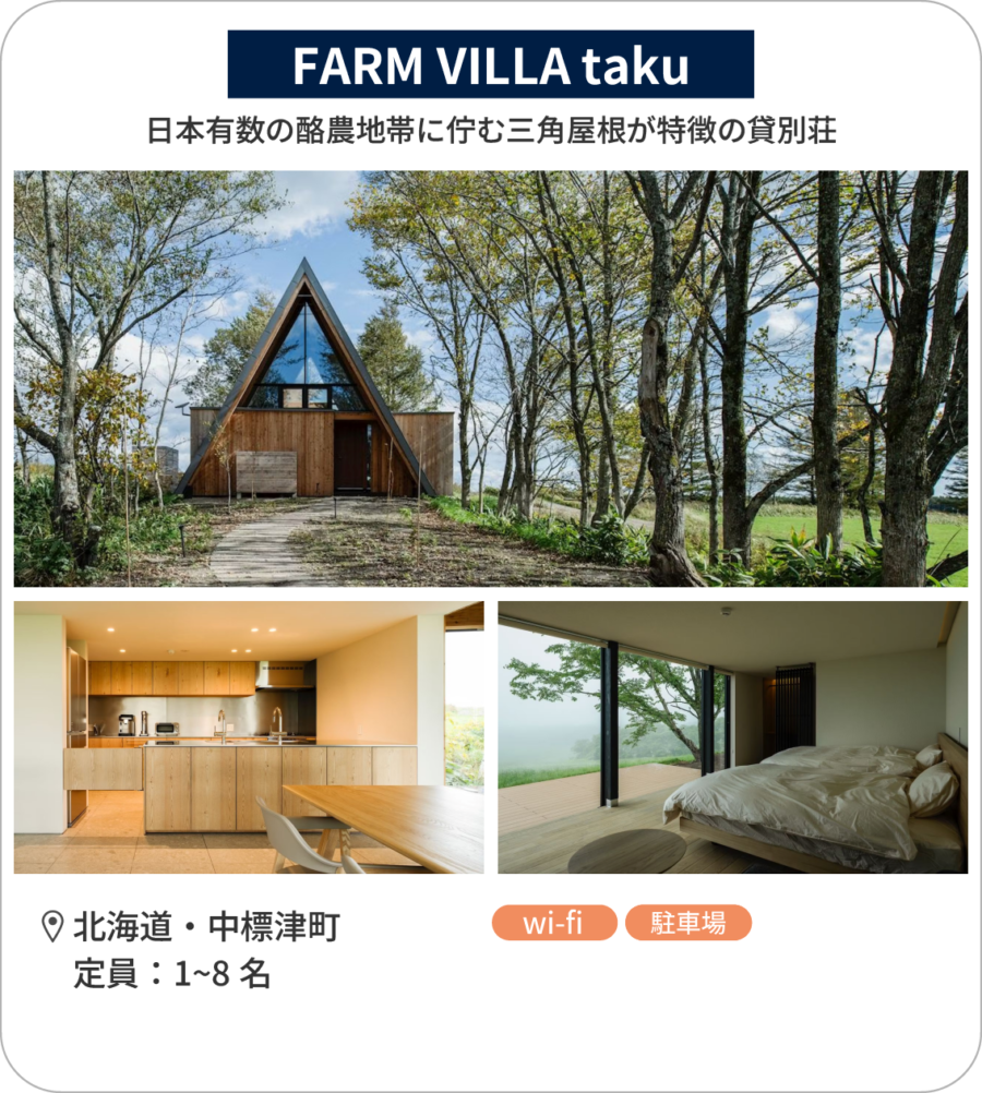 日本有数の酪農地帯に佇む三角屋根が特徴の「FARM VILLA taku」